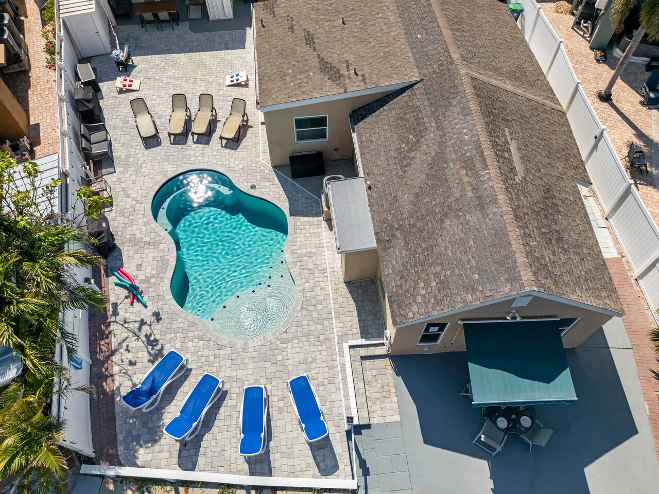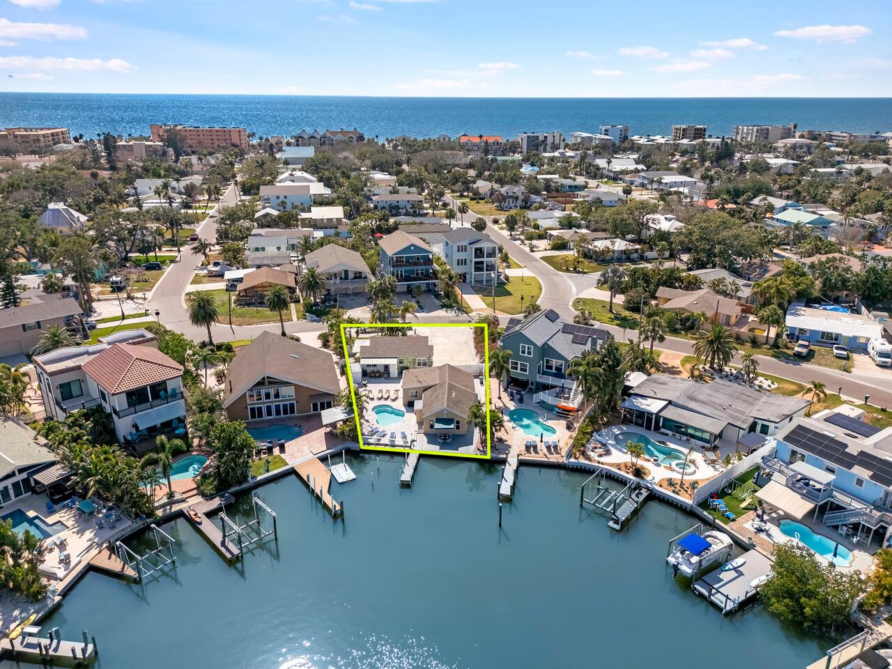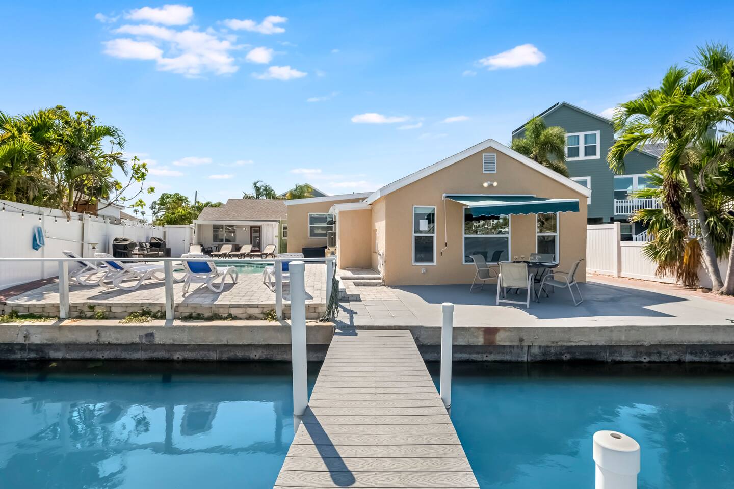 ✨ Perfect for families & groups, these two private homes combine comfort, space, and fun. Relax in the heated saltwater pool, fish from your private dock, or stroll to the beach just minutes away. ✨ Enjoy the convenience of two full kitchens, three bathrooms, and six bedrooms—plus family extras like pack ’n plays, high chairs, and strollers that make traveling with kids stress-free. Whether you’re gathering multiple families or celebrating with friends, this retreat has the room and amenities you need. ☆☆ HIGHLIGHTS ☆☆ ✹6 bedrooms + extra sleeping: 2 kings, 2 queens, 4 twin trundles ✹3 full bathrooms with toiletries provided ✹2 modern kitchens w/ stainless steel appliances ✹Private dock for fishing & wildlife spotting ✹Heated saltwater pool + beach essentials ✹Complimentary coffee bars ✹Spacious living rooms w/ 65" + 58" smart TVs ✹Private back patio: fenced w/ 2 grills, corn hole, loungers, dining areas ✹Family extras: 2 pack ’n plays, 2 high chairs, 2 strollers, kids’ utensils ✹In-unit washers + dryers ✹Free parking for 6 vehicles + overflow parking on shells ✹Pet-friendly w/ fee & host approval ✹Early check-in + late check-out available ✹Private location near Indian Rocks Beach attractions ★★ Guest Reviews ★★ "The house was amazing—quick walk to the beach, bars, and restaurants. Perfect for our bachelor party with lots of beds, a pool, and great views. 10/10!" – Alex "Our 3 families of 14 had the best time. Grace was extremely responsive, and both homes were spacious and stocked with beach towels, chairs, and floats. Highly recommend." – Michael "Plenty of room and stocked with all the essentials and more. We loved the pool, the dock, and even spotted manatees and dolphins daily. A wonderful stay!" – Kelly ★★ BEDROOMS ★★ Six bedrooms spread across two homes ensure everyone has space. Each bedroom includes a smart TV and storage. ✹ Bedroom 1: King bed, 43” smart TV ✹ Bedroom 2: King bed, 43” smart TV ✹ Bedroom 3: Two twin trundles, 43” smart TV, ensuite bath + laundry ✹ Bedroom 4: Queen bed, 43” smart TV ✹ Bedroom 5: Queen bed, 43” smart TV ✹ Bedroom 6: Two twin trundles, 32” smart TV ✔ Extra sleeping: queen & full sofa beds ✔ Ideal for groups up to 14 ★★ BATHROOMS ★★ Three full bathrooms provide plenty of privacy. ✹ Bathroom 1: Full bath near bedrooms 1 & 2 ✹ Bathroom 2: Ensuite to bedroom 3 ✹ Bathroom 3: Full bath in Bay Escape home ✔ Shampoo, conditioner & body wash included ✔ Hair dryers, irons + ironing boards ✔ Fresh bath & beach towels ★★ KITCHENS & DINING ★★ Cook together or split into two kitchens for easy meal prep. ✔ Stainless steel appliances + cookware ✔ Coffee bars w/ K-Cups & creamers ✔ Dining for 12 + breakfast bar seating for 4 ✔ Two high chairs included ✔ Outdoor grills for BBQ nights ★★ LIVING ROOMS ★★ Open and bright living areas make it easy to relax after a day in the sun. ✔ Comfortable couches + sofa beds ✔ 65” & 58” flat screen smart TVs ✔ Board games, books, and kids’ toys ★★ OUTDOOR SPACE ★★ The backyard is your group’s private Florida playground. ✔ Heated saltwater pool with floaties ✔ Fenced patio w/ loungers, dining, and fire pit under string lights ✔ Two BBQ grills + corn hole ✔ Private dock for fishing & manatee sightings ✔ Two carts stocked with chairs, blankets & umbrellas ★★ ACTIVITIES & ATTRACTIONS ★★ ✔ Beaches: Indian Rocks Beach minutes away; trolley access to Clearwater, Madeira & Treasure Island ✔ Family Fun: Splash Harbour Water Park, IRB Boat Rentals, Riverwalk playgrounds, Indian Rocks Nature Preserve ✔ Groups: Fishing charters, dolphin cruises, escape rooms & golf courses ✔ Dining & Shopping: Salt Rock Grill, Crabby Bill’s, Guppy’s on the Beach, plus local boutiques & surf shops ★☆ Book your stay today and create unforgettable memories with two private homes—complete with heated pool, dock, and all the extras for large groups. ☆★ House Rules ✔ No parties or unregistered guests ✔ Quiet hours after 10 pm ✔ No smoking ✔ Pets allowed with approval & fee ✔ Please respect neighbors and property We take pride in quick communication—expect a fast response if you need anything before or during your stay.