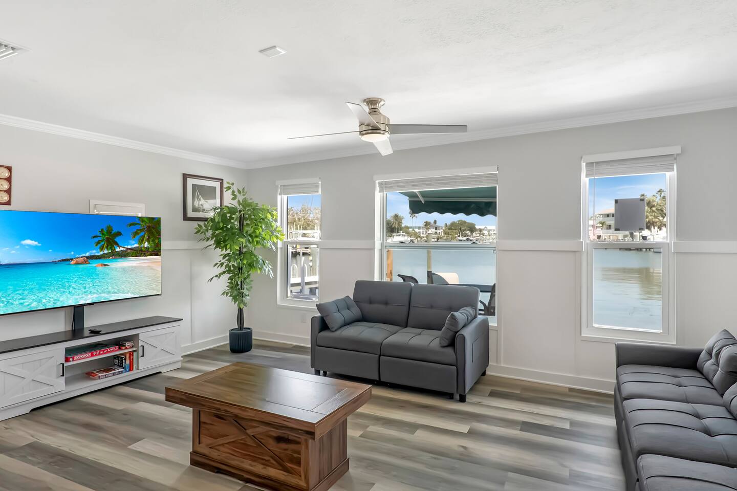 Step into two spacious 3-bedroom homes joined by a heated saltwater pool on prime waterfront. Walk 3 minutes to sand, restaurants & parks. 6 bedrooms, 3 baths – sleeps 14 comfortably Private dock for kayaks & sunset views Fully stocked kitchens + grill patio Smart TVs, gig-speed Wi-Fi, games Free on-site parking for 6 cars Super host team replies within an hour. Book your IRB getaway today!
