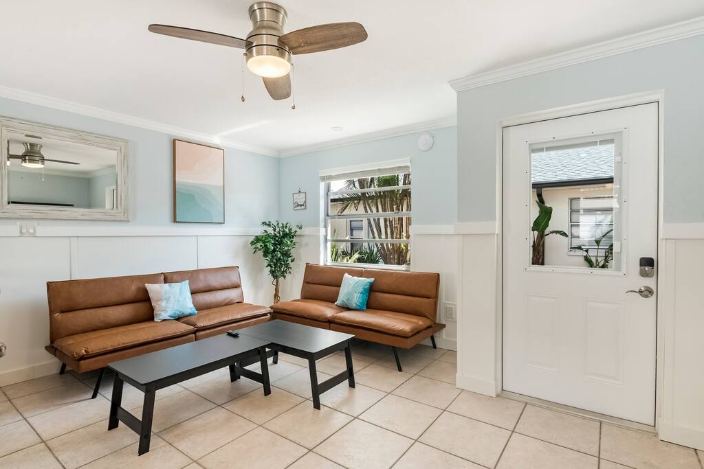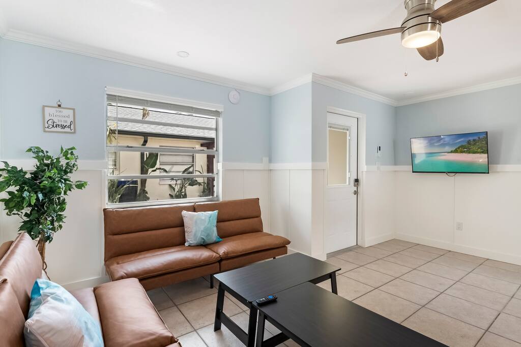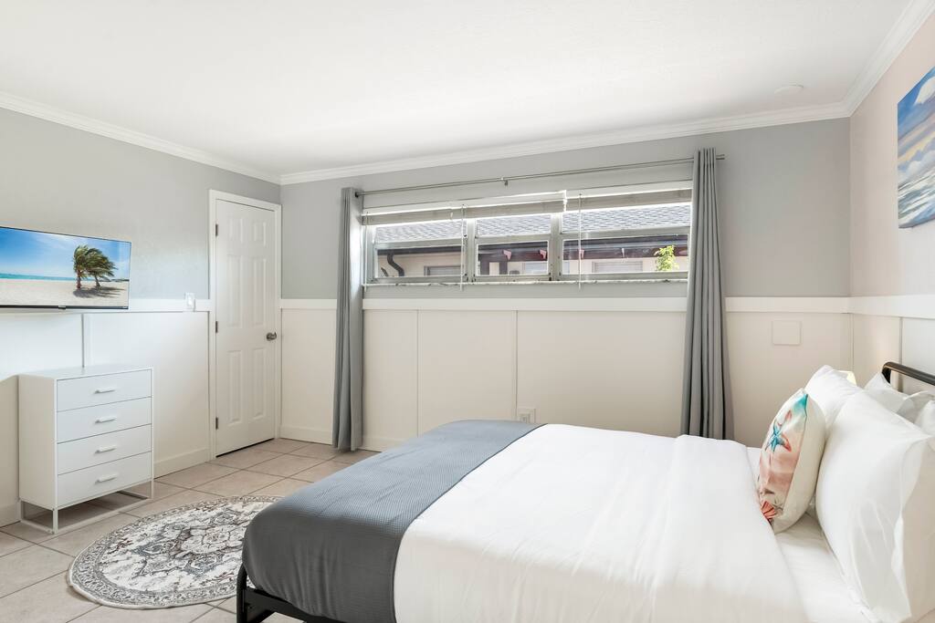 ✨ A family-friendly escape with all the extras—this Treasure Island retreat is designed for fun, comfort, and unforgettable memories. From the heated salt pool to the dock, every detail is tailored to groups who want more than just a place to stay. ✨ ☆☆ HIGHLIGHTS ☆☆ ✹ 1 bedroom: 1 queen + smart TV ✹ 1 full bathroom (with tub) + toiletries provided ✹ Waterfront property with shared dock ✹ Heated saltwater pool (shared with 8 other Airbnbs) ✹ Beach chairs + beach towels included ✹ Fully stocked modern kitchen w/ stainless appliances + coffee bar ✹ Family extras: pack ’n play, high chair, stroller, + kids’ utensils (fee) ✹ Living room w/smart TV + board games + 2 futons (sleeping for 2) ✹ Free parking in the driveway for 1 car ✹ Pet-friendly (pet fee + host approval required) ✹ Quiet location near beaches, dining & attractions ✹ Early check-in + late check-out available (fee/depending on availability) ★★ BEDROOM ★★ ✔ Queen bed, smart TV, ensuite bathroom + large closet ✔ Ample storage for longer stays ✔ Iron, ironing board & broom ★★ BATHROOM ★★ ✔ Ensuite to Bedroom: shower + tub ✔ Shampoo, conditioner, body wash, makeup towels & hair dryers ✔ Bath towels + beach towels ★★ KITCHEN & DINING ★★ Cook or grill with ease. ✔ Stainless appliances, cookware & utensils ✔ Coffee bar w/ K-Cup machine, K-Cups, tea, cream & sugar ✔ Dining table for 4 ★★ LIVING ROOM ★★ ✔ 2 futons with sleeping for 2 ✔ Smart TV ✔ Family board games ★★ OUTDOOR SPACE ★★ ✔ Heated saltwater pool (shared) ✔ Dock (shared) ✔ Outdoor dining with waterfront views (shared) ✔ Gas grill (shared) ✔ Back patio with chairs + table ✔ Outdoor shower ★★ LOCAL ATTRACTIONS ★★ ✔ Family Fun: Treasure Island Beach; Rosselli Park playground; Royal Conquest Pirate Ship Cruise ✔ Group Thrills: Parasailing at Parasailing The Pass; kayak & paddle board rentals at PADL; sailing at Suncoast Sailing; fishing charters at Treasure Island Fishing Charters ✔ Bachelorette Bliss: Dolphin cruises & fishing charters at Hubbard's Marina; cocktails at Sloppy Joe’s; beachfront meals and drinks at Caddy's ✔ Dining & Shopping: Middle Grounds Grill; Foxy’s Café; The Florida Shell Shop; Island Grocer Boutique; Sea Dog Brewing ★☆ Don’t just book a stay—book an experience. Reserve your Treasure Island getaway today and enjoy waterfront views, a heated salt pool, dock, & endless family-friendly fun! ☆★