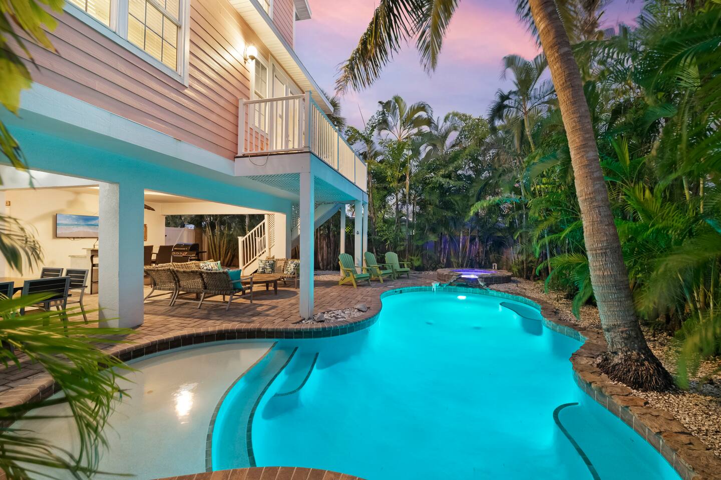 5-minute stroll to the private beach, heated pool, bubbling spa & ping-pong fun—perfect for families seeking sunshine! 5 bedrooms, 3 kings & 2 queens (sleeps 10) Chef-ready kitchen, outdoor grill & fast 654 Mbps Wi-Fi Beach gear, pack ’n play & high chair included Explore nearby cafés, boutiques and coastal bike paths, then unwind under the stars by the pool. Ready for a worry-free getaway? Click “Reserve” before your dates disappear!