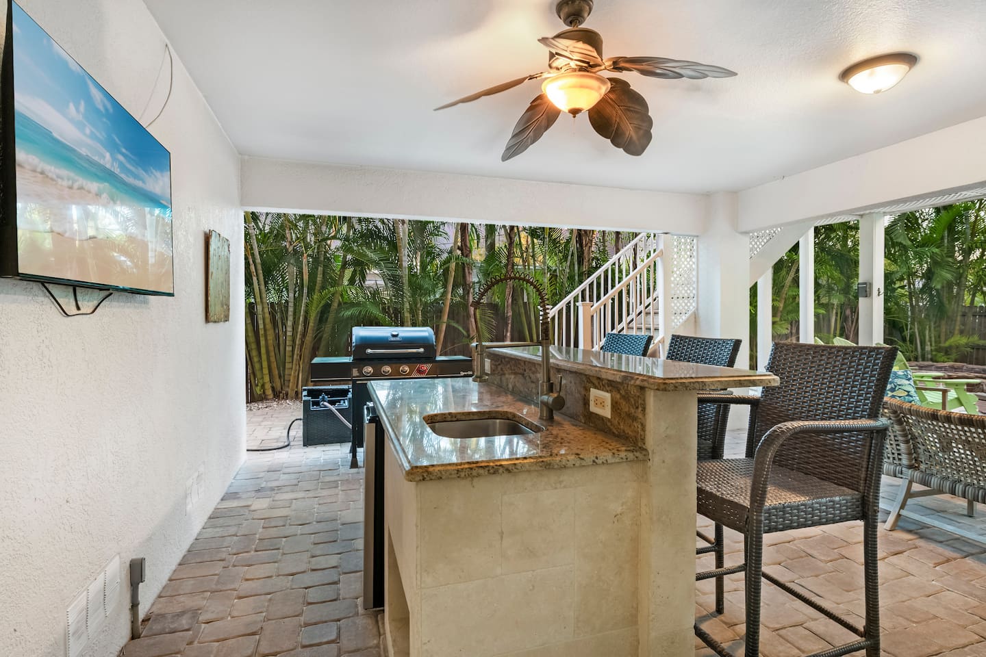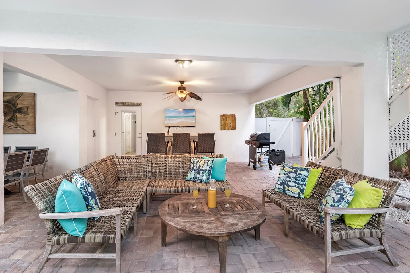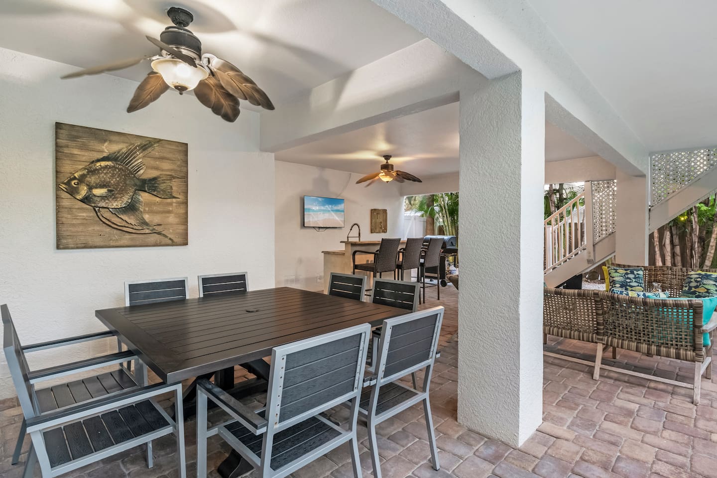 ✨ Welcome to Coral Retreat! A family-friendly escape with all the extras—this Holmes Beach retreat, located just a 5-minute walk from a private beach, is designed for fun, comfort, and unforgettable memories. From the heated pool and hot tub to the ping pong table and spacious patio, every detail is tailored to groups who want more than just a place to stay. ✨ ☆☆ HIGHLIGHTS ☆☆ ✹ 5 spacious bedrooms: 3 kings (2 ensuite), 2 queens + smart TVs in each ✹ 3 full bathrooms (1 tub), 1 half bathroom, toiletries + hair dryers provided ✹ Fully stocked modern kitchen w/ stainless appliances + coffee bar ✹ Beach chairs, beach umbrellas, cooler, + beach wagons ✹ Family extras: pack ’n play, highchair, stroller, kids toys, kids books + kids’ utensils ✹ Living room w/ 55" smart TV + board games ✹ Heated pool, hot tub + ping pong table ✹ Outdoor Patio: Dining table for 8, mini fridge, 50" smart TV, bar w/ seating for 3 ✹ High-speed Wi-Fi (654 Mbps) ✹ In-unit washer + dryer ✹ Driveway parking for 5 cars ✹ Quiet location near beaches, shopping, dining & attractions ★★ GUEST REVIEWS ★★ "The house was beautiful and in a great location—short walk to a picture perfect beach & close to great restaurants. The house was perfectly equipped with everything we needed plus a lot which could be useful but we didn’t necessarily need (all the baby gear you can imagine.) Best of all, Grace was super quick to respond and also proactively check in on us during our stay." - Nelly "Having been to the area many times, we loved the location of this house and proximity to the beach and restaurants and shops. The house was super cleaned and had everything we needed to cook in, for children, and for days at the beach. We hope to stay again! - Julie ★★ BEDROOMS ★★ Five bedrooms (2 ensuite). All bedrooms feature quality linens, storage, and smart TVs. ✹ Primary (2nd floor): King bed, smart TV, ensuite bathroom, private balcony, dresser + closet ✹ Bedroom 2 (3rd floor): King bed, smart TV, ensuite bathroom, private balcony, closet + dresser ✹ Bedroom 3 (3rd floor): King bed, smart TV, closet + dresser ✹ Bedroom 4 (3rd floor): Queen bed, smart TV + dresser ✹ Bedroom 5 (3rd floor): Queen bed, smart TV, dresser + 2 closets ✔ Ample storage for longer stays ✔ Irons, ironing boards, vacuum + broom ✔ Pack n' play ★★ BATHROOMS ★★ 3 full bathrooms and one half bathroom provide convenience and privacy for your whole group. ✹ Bathroom 1 (2nd floor): Ensuite to primary bedroom, 2 sinks, large shower + walk-in closet ✹ Bathroom 2 (3rd floor): Ensuite to 2nd bedroom, 2 sinks, large shower + vanity table ✹ Bathroom 3 (3rd floor): Shower/tub combo near bedrooms 4 & 5 ✹ Bathroom 4 (2nd floor): Half bathroom connected to laundry room ✔ Shampoo, conditioner, body wash, makeup, towels & hair dryers ✔ Fresh bath + beach towels provided for all guests ★★ KITCHEN & DINING ★★ The large kitchen is stocked for everything from quick breakfasts to family feasts. ✔ Stainless appliances, cookware & utensils ✔ Coffee bar w/ K-Cup machine, drip coffee machine, K-cups, ground coffee, tea, cream & sugar ✔ Crock-Pot, rice cooker, blender, toaster + more ✔ Dining table for 8 + breakfast bar for 3 ✔ High chair, kids utensils + sippy cups ★★ LIVING ROOM ★★ ✔ Large sofa + 3 chairs ✔ 55" smart TV ✔ Family board games (Monopoly, Jenga, Scrabble, Candy Land, Taboo, What?, etc.) + cards ★★ GAME ROOM ★★ ✔ Ping pong table located in the garage ★★ OUTDOOR SPACE ★★ The backyard is your private paradise. Lounge poolside, soak in the hot tub, grill, or grab drinks from the mini fridge and watch TV by the bar. ✔ Heated pool (The heater is set to 86° and runs from 7am - 11pm. Temperature of the pool may vary with colder weather.) ✔ Hot tub + grill ✔ Outdoor dining table with seating for 8 ✔ Bar, mini fridge, sink, 50" smart TV, and seating for 3 ✔ Additional seating for the whole group by the pool ✔ Adirondack chairs for soaking up the sun ✔ Fenced in patio ★★ LOCAL ATTRACTIONS ★★ ✔ Family Fun: Holmes Beach (just .2 miles away), The Fish Hole Miniature Golf, MV Minnow Dolphin Tours, & Island Hoppers Boat Tours. ✔ Group Activities: AMI eBikes, Fun and More Rentals (golf carts, kayaks, & paddleboards), Anna Maria Island Parasail, Orca Pro Charters (snorkeling & charter experiences), Shore Thing Tiki Cruises, Flip Flops Sailing, Anna Maria Island Dolphin Tours, & more. ✔ Dining & Shopping: Anna Maria Island Beach Cafe, The Ugly Grouper, Hurricane Hanks, Pizzano's Pizza, The Waterfront Restaurant, Sandbar Seafood + Spirits, Topsail Steamer. ★☆ Don’t just book a stay—book an experience. Reserve your Holmes Beach getaway today and enjoy a heated pool, hot tub, game room & endless family-friendly fun! ☆★ Coral Retreat hosted by EasyStay LLC VRC18-000114