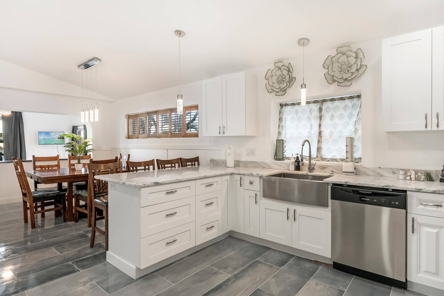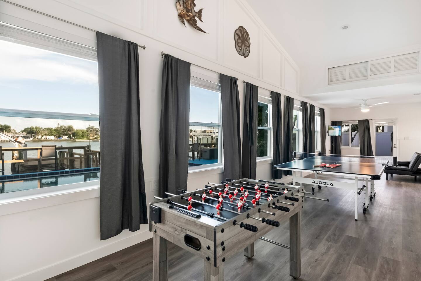 ✨ A family-friendly escape with all the extras—this Treasure Island retreat is designed for fun, comfort, and unforgettable memories. From the heated salt pool to the dock, every detail is tailored to groups who want more than just a place to stay. ✨ ☆☆ HIGHLIGHTS ☆☆ ✹ 3 bedrooms: 2 kings + 1 queen + smart TVs ✹ 2 full bathrooms + toiletries provided ✹ Waterfront property with shared dock ✹ Heated saltwater pool (shared with 8 other Airbnbs) ✹ Beach chairs + beach towels included ✹ Fully stocked modern kitchen w/ stainless appliances + coffee bar ✹ Family extras: pack ’n play, high chair, stroller, + kids’ utensils ✹ Living room w/smart TV + board games + futon (sleeping for 1) ✹ Free parking in the driveway for 2 cars ✹ Pet-friendly (pet fee + host approval required) ✹ Quiet location near beaches, dining & attractions ✹ Early check-in + late check-out available (fee/depending on availability) ★★ BEDROOM 1 ★★ ✔ King bed, smart TV, ensuite bathroom + closet ✔ Iron, ironing board & broom ★★ BEDROOM 2 ★★ ✔ King bed, smart TV, ensuite bathroom + closet ✔ Iron, ironing board & broom ✔ Desk + chair ★★ BEDROOM 3 ★★ ✔ Queen bed + smart TV ✔ Ocean/pool views ★★ BATHROOM 1★★ ✔ Ensuite to Bedrooms 1 + 2: shower ✔ Shampoo, conditioner, body wash, makeup towels & hair dryers ✔ Bath towels + beach towels ★★ BATHROOM 2★★ ✔ Next to kitchen: shower ✔ Shampoo, conditioner, body wash, makeup towels & hair dryers ✔ Bath towels + beach towels ★★ KITCHEN & DINING ★★ Cook or grill with ease. ✔ Fully stocked kitchen: Stainless appliances, cookware & utensils ✔ Coffee bar w/ K-Cup machine, drop coffee machine, K-Cups, tea, cream & sugar ✔ Dining table for 5 + breakfast bar with seating for 4 ★★ LIVING ROOM ★★ ✔ Sectional couch ✔ Smart TV ✔ Family board games ★★ GAME ROOM ★★ ✔ Ping pong table + foosball table ✔ Smart TV ✔ Couch/futon with sleeping for 1 ★★ OUTDOOR SPACE ★★ ✔ Heated saltwater pool (shared) ✔ Dock (shared) ✔ Outdoor dining with waterfront views (shared) ✔ Gas grill (shared) ✔ Outdoor shower ★★ LOCAL ATTRACTIONS ★★ ✔ Family Fun: Treasure Island Beach; Rosselli Park playground; Royal Conquest Pirate Ship Cruise ✔ Group Thrills: Parasailing at Parasailing The Pass; kayak & paddle board rentals at PADL; sailing at Suncoast Sailing; fishing charters at Treasure Island Fishing Charters ✔ Bachelorette Bliss: Dolphin cruises & fishing charters at Hubbard's Marina; cocktails at Sloppy Joe’s; beachfront meals and drinks at Caddy's ✔ Dining & Shopping: Middle Grounds Grill; Foxy’s Café; The Florida Shell Shop; Island Grocer Boutique; Sea Dog Brewing ★☆ Don’t just book a stay—book an experience. Reserve your Treasure Island getaway today and enjoy waterfront views, a heated salt pool, dock, & endless family-friendly fun! ☆★