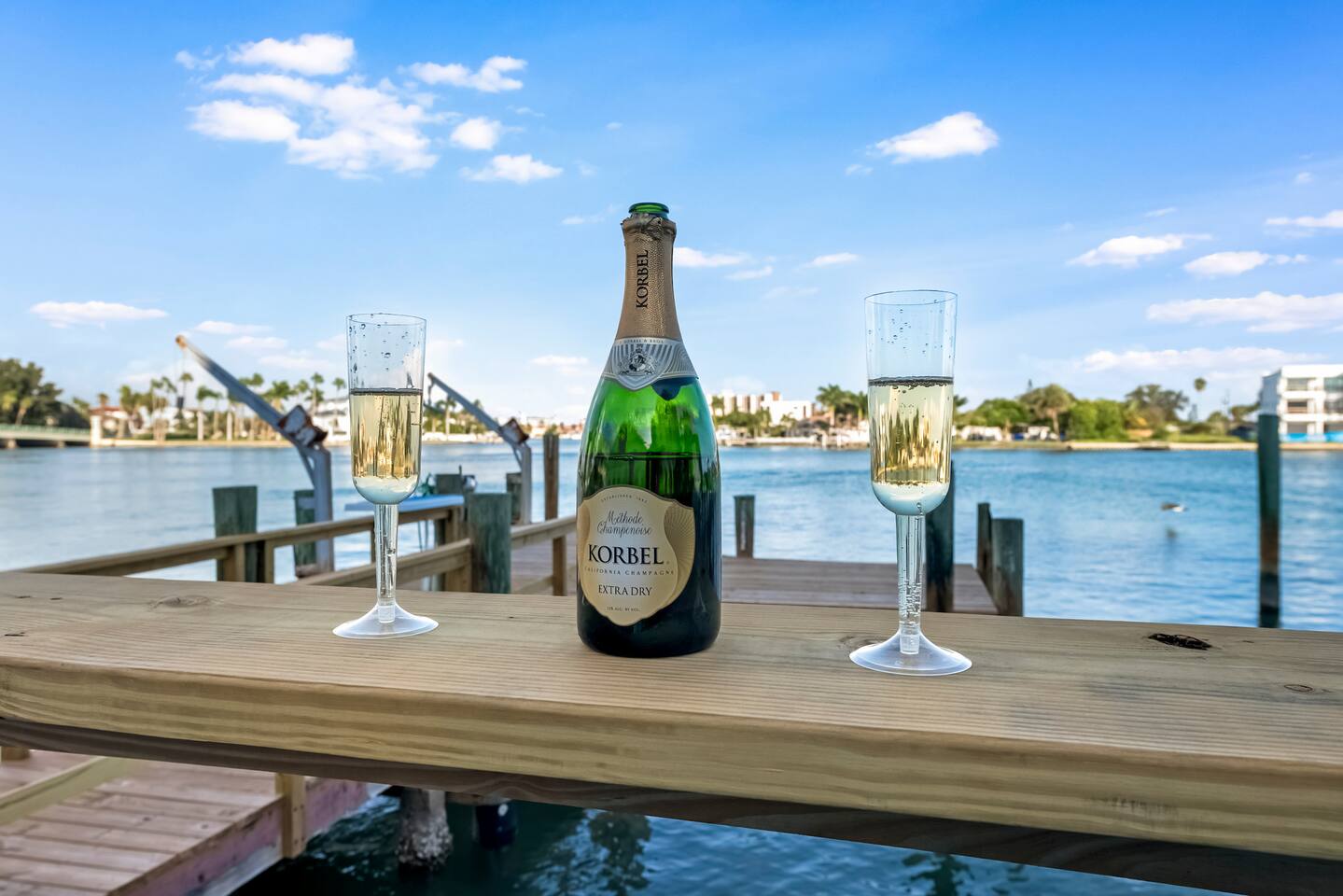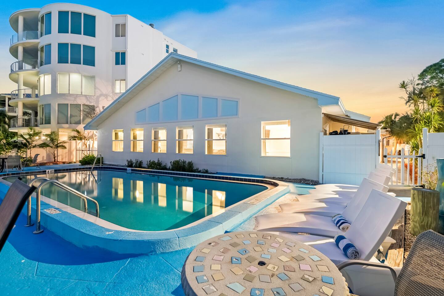 Escape to your waterfront retreat just 0.3 miles from Treasure Island Beach. Swim in the heated saltwater pool, fish off the dock, or dock your boat onsite for sunset cruises and island hopping. 2,057 sq ft 3 bedrooms, 4 beds (2 kings, queen, & futon) — sleeps 7 Full kitchen & outdoor BBQ grill Fast Wi-Fi, smart TVs, beach gear Crib, stroller & high chair After dinner at a local seafood spot, unwind on the patio with sunset cocktails. Your perfect getaway awaits - book now before it's gone!