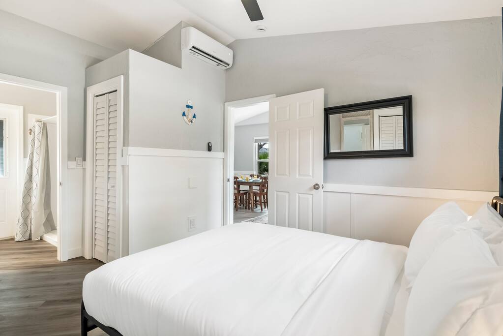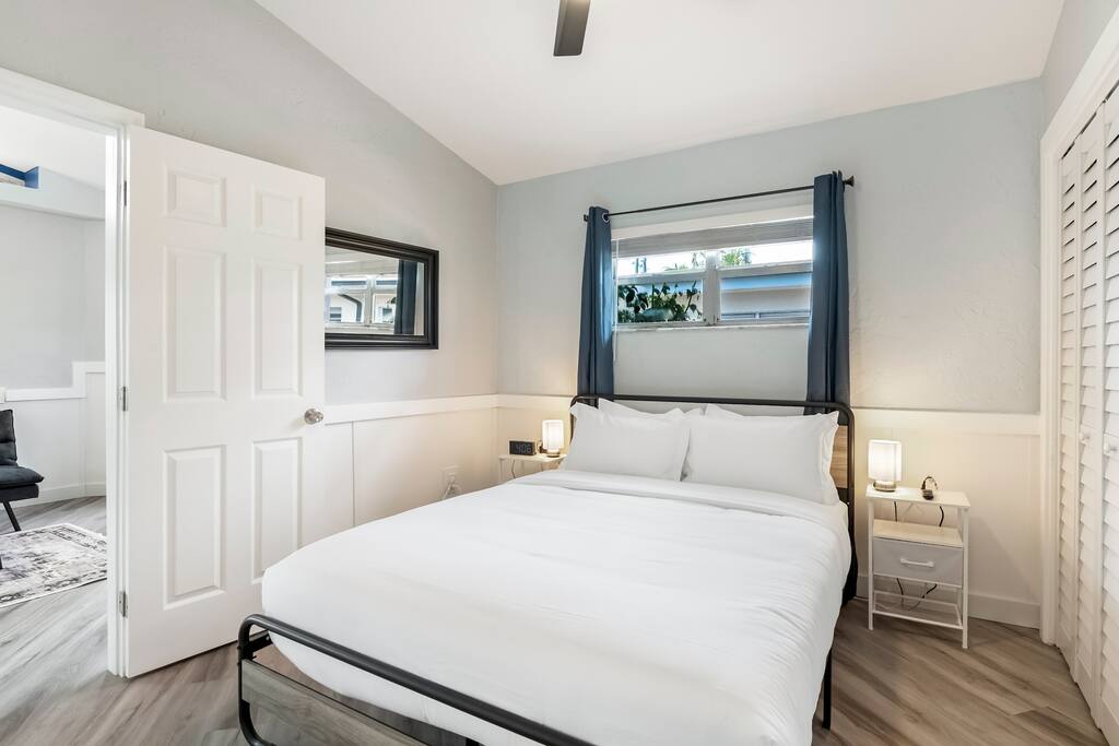 ✨ A family-friendly escape with all the extras—this Treasure Island retreat is designed for fun, comfort, and unforgettable memories. From the heated salt pool to the dock, every detail is tailored to groups who want more than just a place to stay. ✨ ☆☆ HIGHLIGHTS ☆☆ ✹ 1 bedroom: 1 queen + smart TV ✹ 1 full bathroom + toiletries provided ✹ Waterfront property with shared dock ✹ Heated saltwater pool (shared with 8 other Airbnbs) ✹ Beach chairs + beach towels included ✹ Fully stocked modern kitchen w/ stainless appliances + coffee bar ✹ Family extras: pack ’n play, high chair, stroller, + kids’ utensils (fee) ✹ Living room w/smart TV + board games + 2 futons (sleeping for 2) ✹ Free parking in the driveway for 1 car ✹ Pet-friendly (pet fee + host approval required) ✹ Quiet location near beaches, dining & attractions ✹ Early check-in + late check-out available (fee/depending on availability) ★★ BEDROOM ★★ ✔ Queen bed, smart TV, ensuite bathroom + closets ✔ Ample storage for longer stays ✔ Iron, ironing board & broom ★★ BATHROOM ★★ ✔ Ensuite to Bedroom: shower ✔ Shampoo, conditioner, body wash, makeup towels & hair dryers ✔ Bath towels + beach towels ★★ KITCHEN & DINING ★★ Cook or grill with ease. ✔ Stainless appliances, cookware & utensils ✔ Coffee bar w/ K-Cup machine, K-Cups, tea, cream & sugar ✔ Dining table for 4 ★★ LIVING ROOM ★★ ✔ 2 futons with sleeping for 2 ✔ Smart TV ✔ Family board games ★★ OUTDOOR SPACE ★★ ✔ Heated saltwater pool (shared) ✔ Dock (shared) ✔ Outdoor dining with waterfront views (shared) ✔ Gas grill (shared) ✔ Back patio with chairs + table ✔ Outdoor shower ★★ LOCAL ATTRACTIONS ★★ ✔ Family Fun: Treasure Island Beach; Rosselli Park playground; Royal Conquest Pirate Ship Cruise ✔ Group Thrills: Parasailing at Parasailing The Pass; kayak & paddle board rentals at PADL; sailing at Suncoast Sailing; fishing charters at Treasure Island Fishing Charters ✔ Bachelorette Bliss: Dolphin cruises & fishing charters at Hubbard's Marina; cocktails at Sloppy Joe’s; beachfront meals and drinks at Caddy's ✔ Dining & Shopping: Middle Grounds Grill; Foxy’s Café; The Florida Shell Shop; Island Grocer Boutique; Sea Dog Brewing ★☆ Don’t just book a stay—book an experience. Reserve your Treasure Island getaway today and enjoy waterfront views, a heated salt pool, dock, & endless family-friendly fun! ☆★