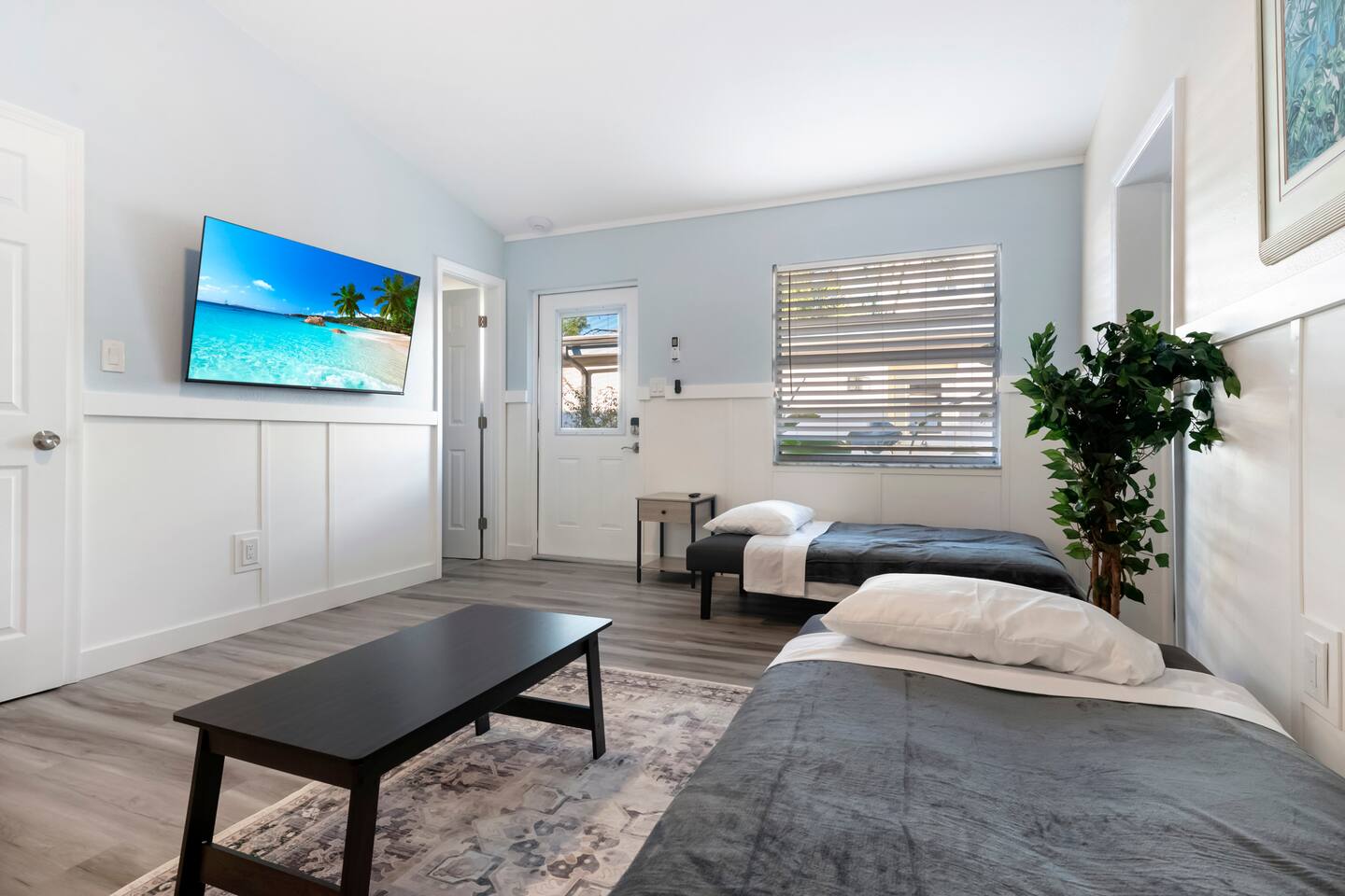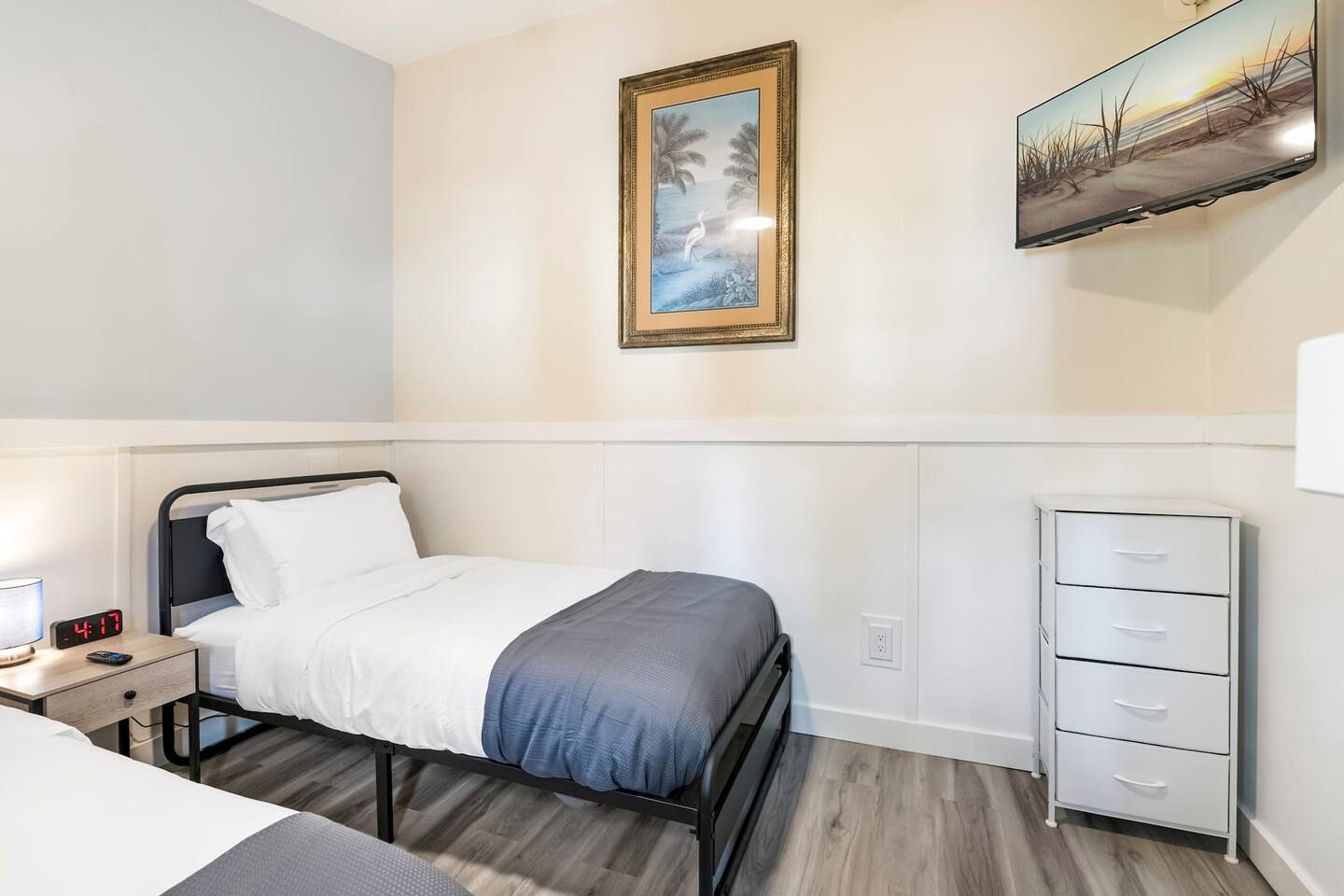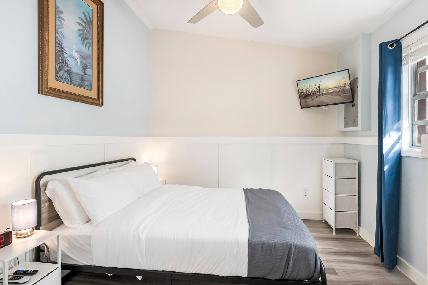✨ A family-friendly escape with all the extras—this Treasure Island retreat is designed for fun, comfort, and unforgettable memories. From the heated salt pool to the dock, every detail is tailored to groups who want more than just a place to stay. ✨ ☆☆ HIGHLIGHTS ☆☆ ✹ 2 bedrooms: 1 queen bed, 2 twin beds + smart TVs ✹ 1 full bathroom (with tub) + toiletries provided ✹ Waterfront property with shared dock ✹ Heated saltwater pool (shared with 8 other Airbnbs) ✹ Beach chairs + beach towels included ✹ Fully stocked modern kitchen w/ stainless appliances + coffee bar ✹ Family extras: pack ’n play, high chair, stroller, + kids’ utensils (fee) ✹ Living room w/smart TV + board games + 2 futons (sleeping for 2) ✹ Free parking in the driveway for 1 car ✹ Pet-friendly (pet fee + host approval required) ✹ Quiet location near beaches, dining & attractions ✹ Early check-in + late check-out available (fee/depending on availability) ★★ BEDROOM 1 ★★ ✔ Queen bed & smart TV ✔ Closet ✔ Iron, ironing board & broom ★★ BEDROOM 2 ★★ ✔ 2 twin beds & smart TV ✔ Closet ✔ Iron, ironing board & broom ★★ BATHROOM ★★ ✔ Shower + tub ✔ Shampoo, conditioner, body wash, makeup towels & hair dryers ✔ Bath towels + beach towels ★★ KITCHEN & DINING ★★ Cook or grill with ease. ✔ Stainless appliances, cookware & utensils ✔ Coffee bar w/ K-Cup machine, K-Cups, tea, cream & sugar ✔ Dining table for 6 ★★ LIVING ROOM ★★ ✔ 2 futons with sleeping for 2 ✔ Smart TV ✔ Family board games ★★ OUTDOOR SPACE ★★ ✔ Heated saltwater pool (shared) ✔ Dock (shared) ✔ Outdoor dining with waterfront views (shared) ✔ Gas grill (shared) ✔ Back patio with chairs + table ✔ Outdoor shower ★★ LOCAL ATTRACTIONS ★★ ✔ Family Fun: Treasure Island Beach; Rosselli Park playground; Royal Conquest Pirate Ship Cruise ✔ Group Thrills: Parasailing at Parasailing The Pass; kayak & paddle board rentals at PADL; sailing at Suncoast Sailing; fishing charters at Treasure Island Fishing Charters ✔ Bachelorette Bliss: Dolphin cruises & fishing charters at Hubbard's Marina; cocktails at Sloppy Joe’s; beachfront meals and drinks at Caddy's ✔ Dining & Shopping: Middle Grounds Grill; Foxy’s Café; The Florida Shell Shop; Island Grocer Boutique; Sea Dog Brewing ★☆ Don’t just book a stay—book an experience. Reserve your Treasure Island getaway today and enjoy waterfront views, a heated salt pool, dock, & endless family-friendly fun! ☆★