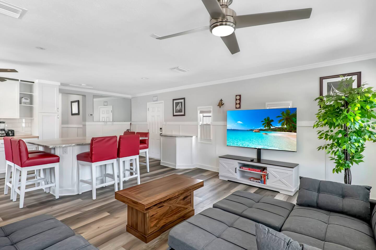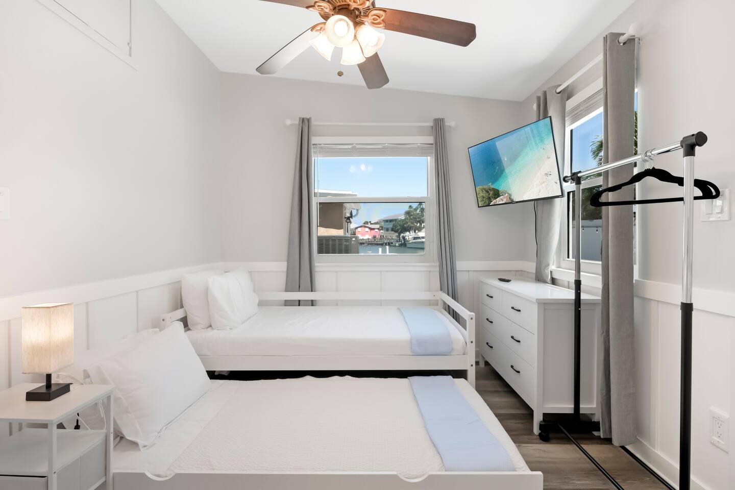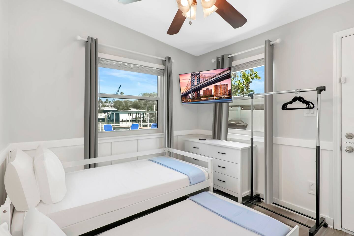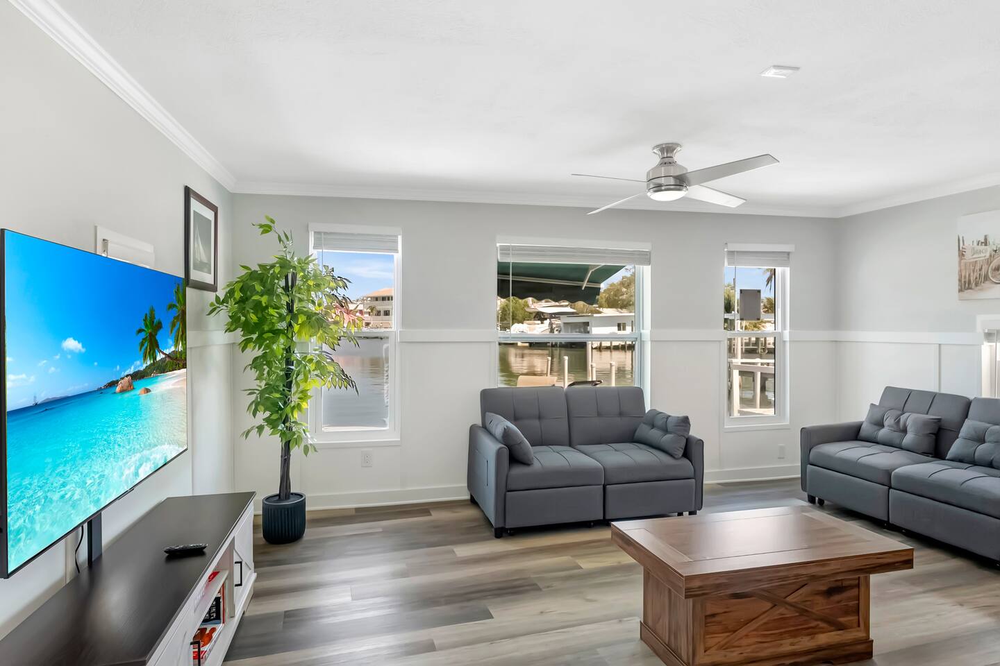 ✨ Escape to Indian Rocks Beach in comfort and style! ✨ Just minutes from the sand, this modern retreat features a Heated Salt Pool, shared dock, and all the essentials for families and groups. ☆☆ HIGHLIGHTS ☆☆ ✹ 3 spacious bedrooms: 2 kings, 2 twin trundle beds ✹ 2 full bathrooms: essential toiletries provided ✹ Modern kitchen w/ stainless steel appliances ✹ Heated saltwater pool (shared w/ one other Airbnb) + floaties + beach essentials ✹ Dock shared w/ one other Airbnb ✹ Complimentary coffee bar ✹ Spacious living area w/ 65" flat screen smart TV ✹ Shared back patio: fully-fenced w/ grill, corn hole, loungers + outdoor furniture ✹ Family-friendly: pack ‘n play, high chair, stroller + kids silverware ✹ In-unit washer + dryer ✹ Free driveway parking for 3 + extra parking on shells ✹ Pet-friendly: fee + host approval required ✹ Early check-in + late check-out (extra fee & availability) ✹ Amazing location near beaches, dining & attractions ★★ Guest Reviews ★★ "The house had great shared space, a beautiful view, and was private, quiet, clean and comfortable. The pool was amazing and fully stocked with everything we needed." – Kerry "Grace was very responsive and helpful. Location was wonderful, just a short walk to the beach. The backyard pool and even a visiting manatee made it unforgettable!" – Scott "Great location and space, very walkable to the beach and restaurants. The pool was perfect after beach days, and bonus chairs and umbrellas were provided. Would stay here again!" – Beth ★★ BEDROOMS ★★ Three well-appointed bedrooms offer plenty of space and comfort, with smart TVs and thoughtful touches in every room. ✹ Primary Bedroom: King bed, 43” smart TV ✹ Bedroom 2: King bed, 43” smart TV ✹ Bedroom 3: Two twin trundle beds, ensuite bath, 43” smart TV ✔ USB outlets for charging devices ✔ Room-darkening curtains + ceiling fans ★★ BATHROOMS ★★ Two bathrooms provide convenience and privacy. ✹ Bathroom 1: Full bath with shower near bedrooms 1 & 2 ✹ Bathroom 2: Ensuite to bedroom 3 with shower + washer & dryer ✔ Toiletries (shampoo, conditioner, body wash) ✔ Hair dryers in each bathroom ✔ Fresh towels, beach towels & makeup towels ★★ KITCHEN & DINING ★★ Cook at home or grill outdoors with ease. ✔ Fully stocked kitchen w/ stainless appliances ✔ Complimentary coffee bar w/ K-Cup machine ✔ Dinnerware & cookware provided ✔ Dining table seats 6 + breakfast bar seats 4 ✔ High chair included ★★ LIVING ROOM ★★ The open-concept living room is designed for relaxation and fun. ✔ Plush couches + pull-out queen & full sofa beds ✔ 65” flat screen smart TV ✔ Board games & books for family nights ★★ OUTDOOR SPACE ★★ Soak up the Florida sunshine or unwind under string lights in the backyard. ✔ Heated saltwater pool w/ floaties (shared) ✔ BBQ grill & corn hole ✔ Fully fenced patio with loungers & furniture ✔ Shared dock for fishing or dolphin spotting ★★ LOCAL ATTRACTIONS ★★ ✔ Beaches: Indian Rocks Beach minutes away; trolley to Clearwater, Madeira & Treasure Island ✔ Adventures: Fishing charters, boat rentals, golf, dolphin cruises, nature trails ✔ Family Fun: Splash Harbour Water Park, IRB Boat Rentals, Nature Preserve walks ✔ Dining & Shopping: Salt Rock Grill, Crabby Bill’s, Hurricane Eddie’s, Guppy’s on the Beach, plus pizza at Slyce & Pajano’s ★☆ Book your stay today and enjoy Indian Rocks Beach with all the comforts of home—plus a Heated Salt Pool to make every day unforgettable! ☆★